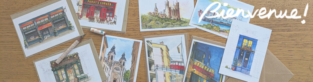 Je suis illustratrice et vous trouverez ici un aperçu de mon travail, orienté principalement vers l’architecture et les devantures de commerce que j’affectionne particulièrement. La belle ville de Lyon, où je vis, est une source d’inspiration infinie. Vous trouverez également quelques dessins de la Belgique, du Cambodge ou encore du Beaujolais chers à mon cœur, ainsi que des portraits d’animaux ou des illustrations de fleurs.